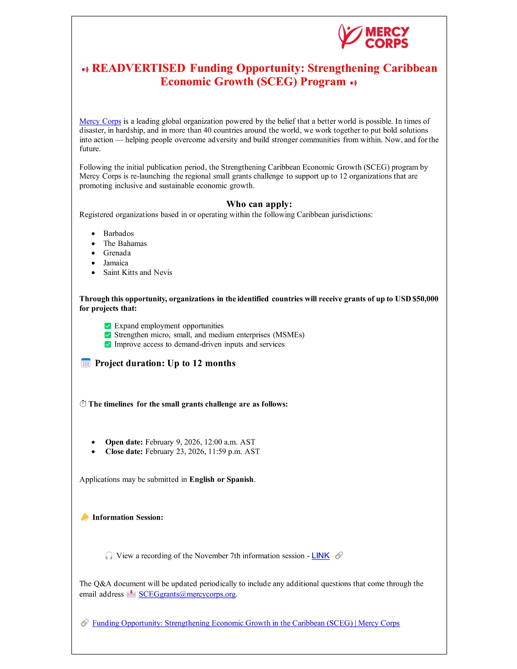 RE- ISSUANCE - Call For Proposals -Strengthening Caribbean Economic Growth (SCEG) Program Small Grants (English).pdf