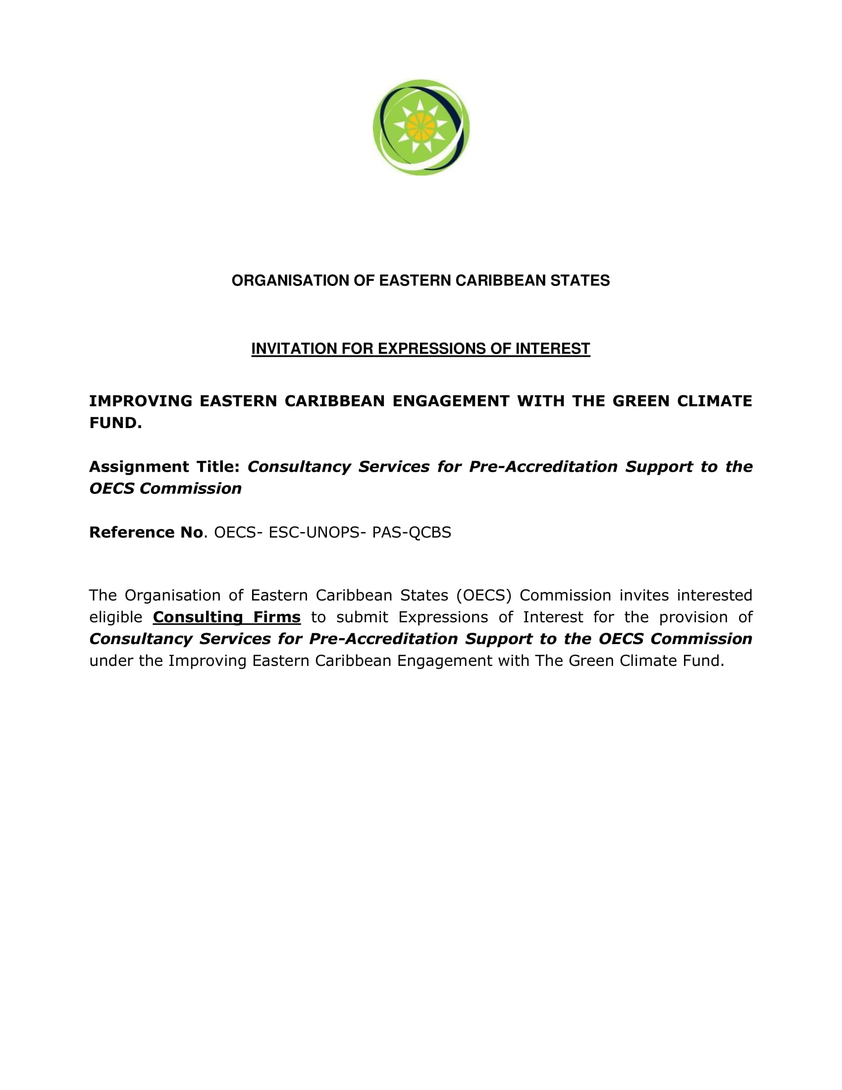 The email submissions should include the name and address of the Consultant and shall be clearly marked in the subject line as “Expression of Interest – Consultancy Services for Pre-Accreditation Support to the OECS Commission.