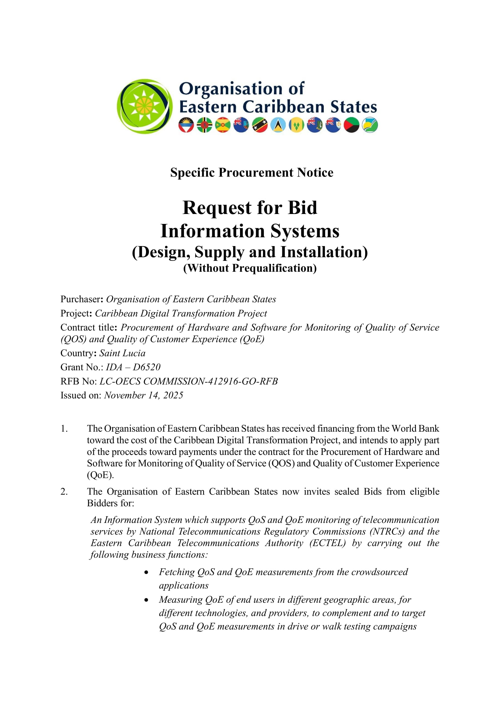 Attention is drawn to the Procurement Regulations requiring the Borrower to disclose information on the successful bidder’s beneficial ownership, as part of the Contract Award Notice, using the Beneficial Ownership Disclosure Form as included in the bidding document.