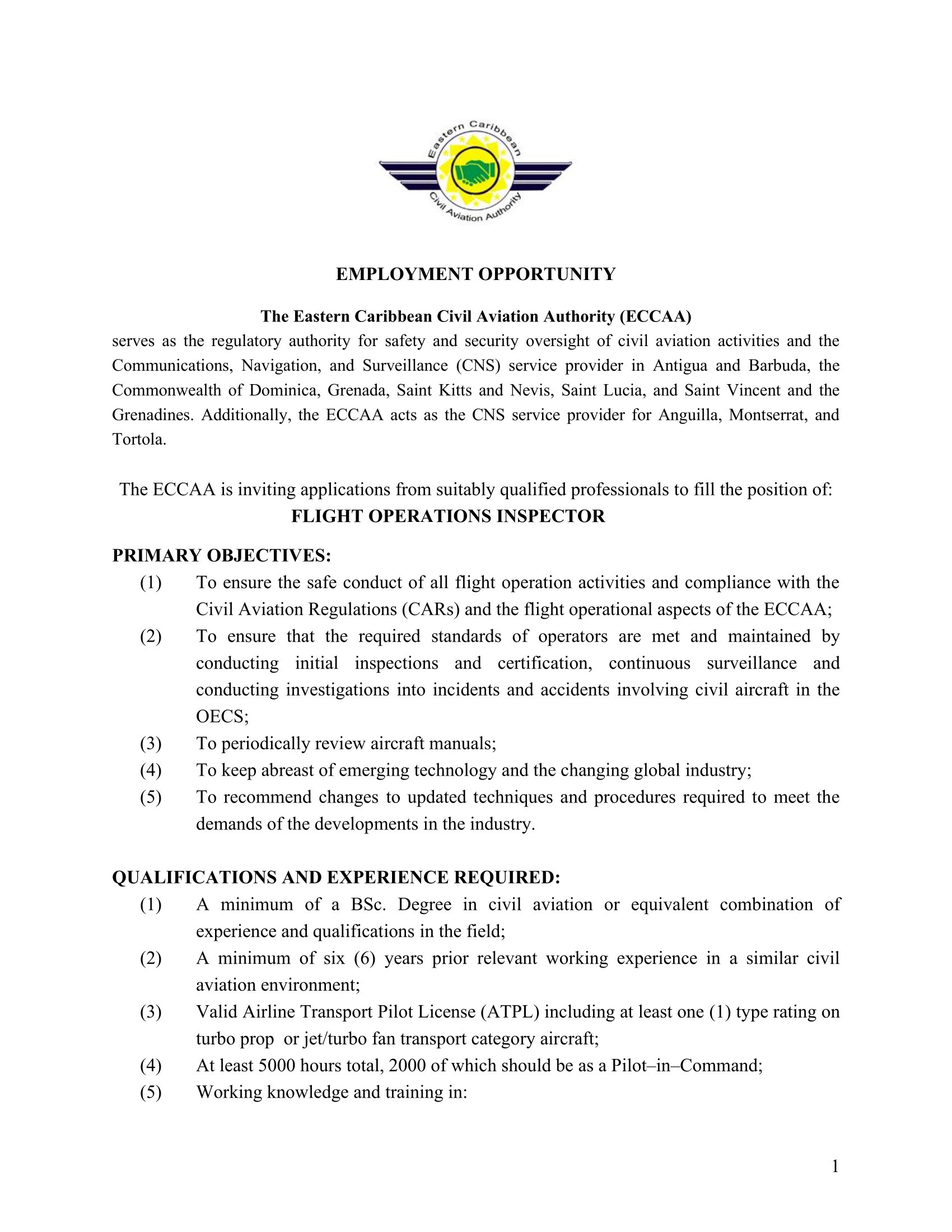 Human Resources Manager, Eastern Caribbean Civil Aviation Authority, P.O. Box 1130, St. John’s, Antigua and Barbuda at .