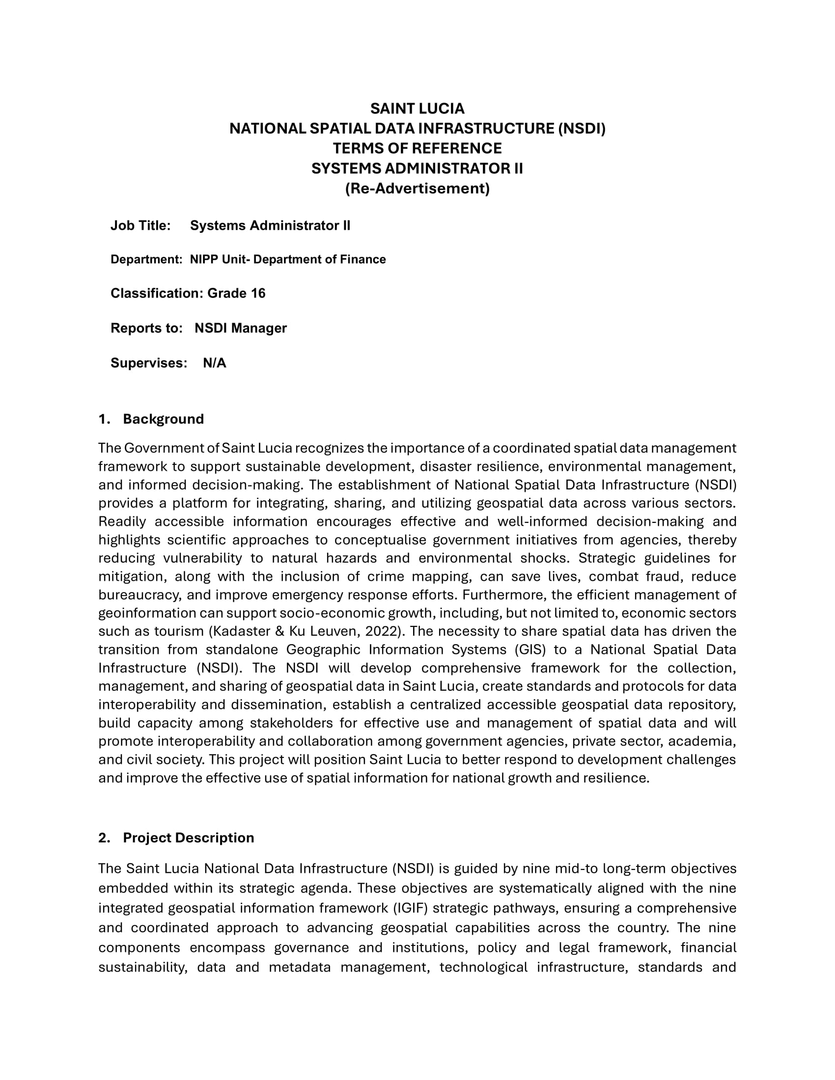 Government of Saint Lucia: National Spatial Data Infrastructure (NSDI) System Administrator II
