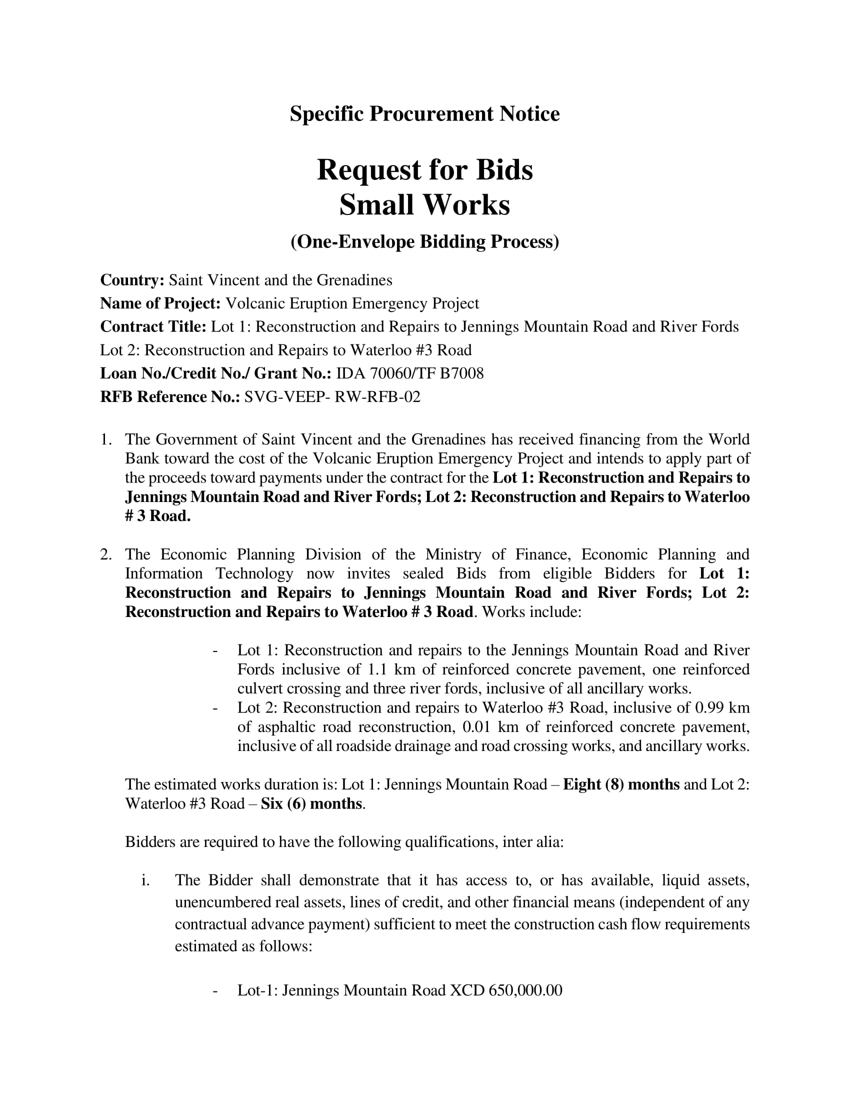 Bidding will be conducted through international competitive procurement using a Request for Bids (RFB) as specified in the World Bank’s “Procurement Regulations for IPF Borrowers,